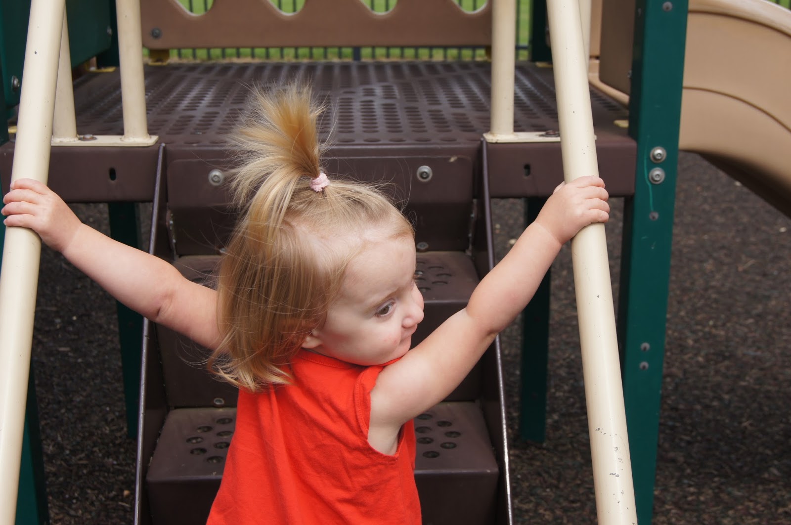 Now, I usually don't go up on the playground equipment with Norah unless it's still too dangerous with me following her along on the ground where she's usually within reach. I was standing next to the slide.